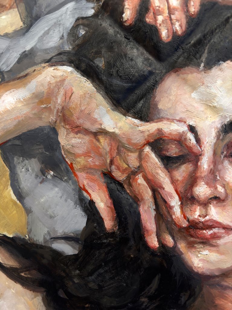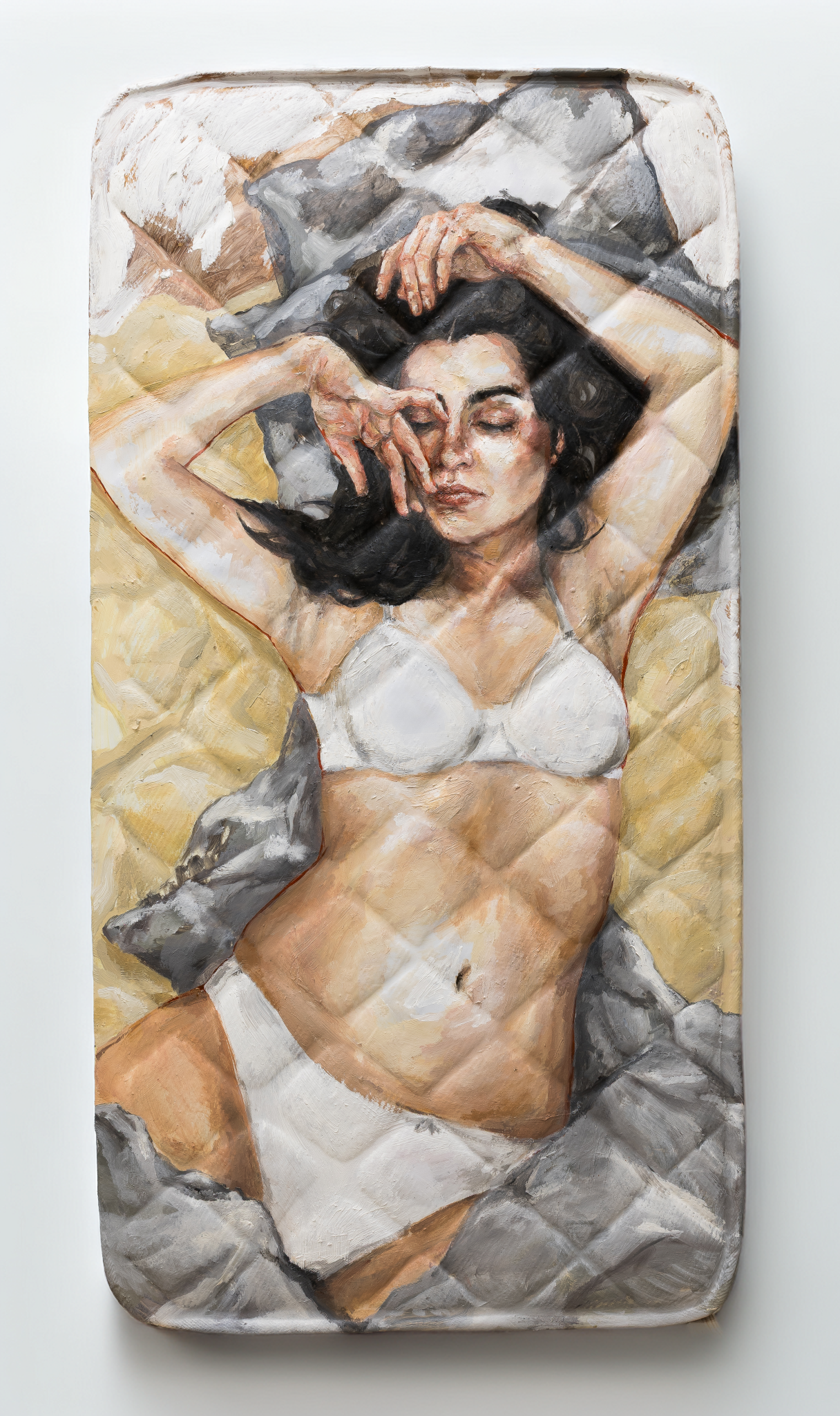 Oil paint on mattress sculpture.
