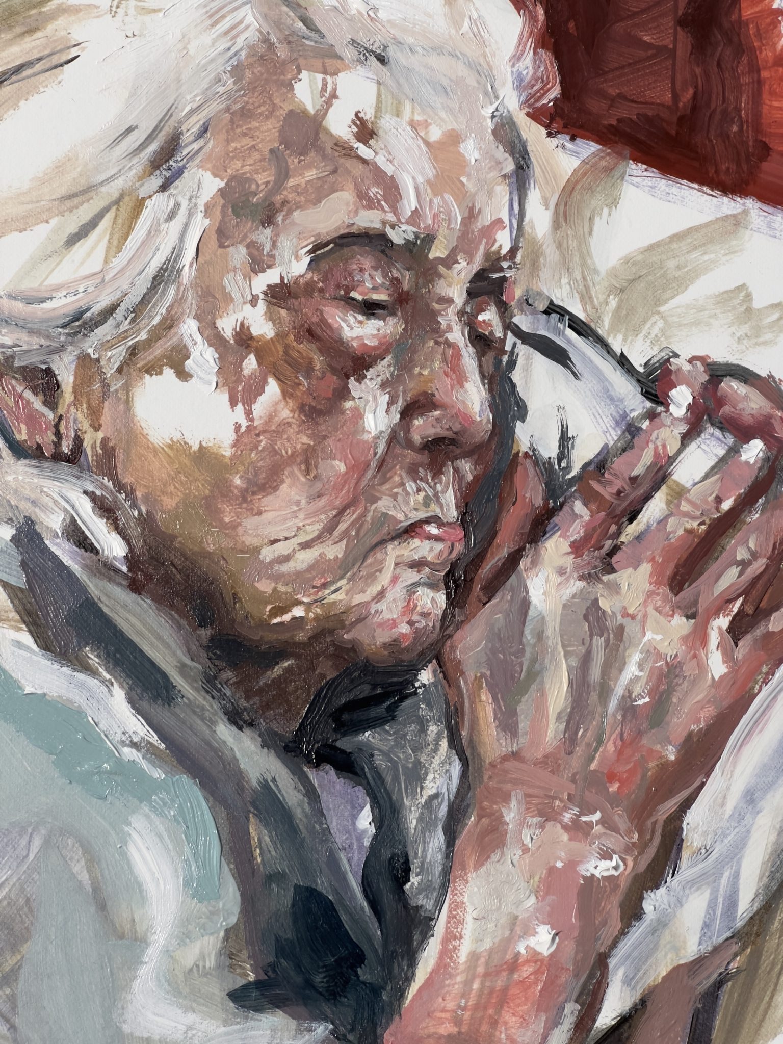 Oil paint on canvas.