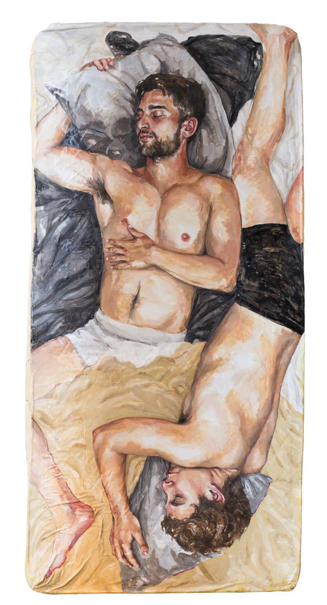 Oil paint on mattress sculpture.